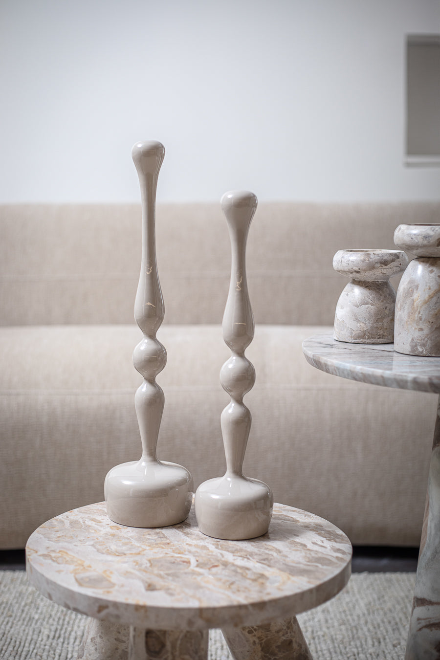 פמוט מתכת אייקון פרוסט בצבע בז'. פמוט בעיצוב קלאסי וסילואט גלי זורם.