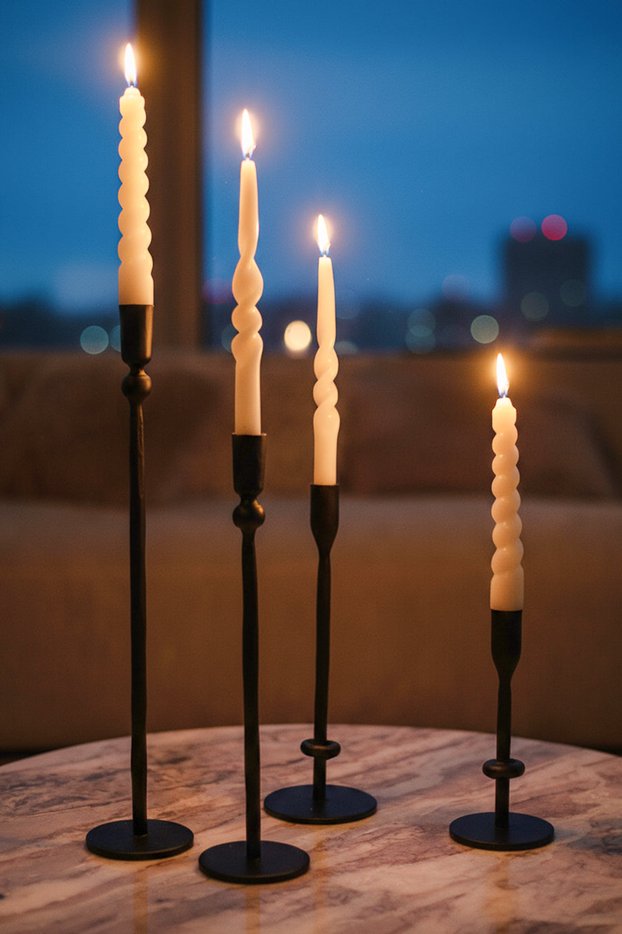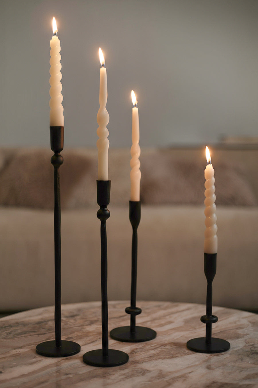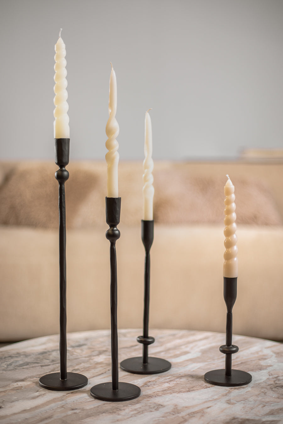 פמוט מטאל סקיני בצבע שחור. פמוט מתכת מינימליסטי בעיצוב נורדי .פמוט מדוייק לאוהבי איבזור קולור בלוק אל זמני.