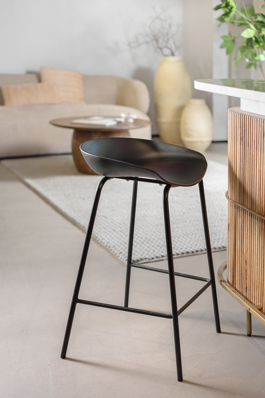 כיסא בר רינו בצבע שחור. כיסא גבוה מעוצב one piece קולור בלוק העומד על רגלי מתכת בצבע זהה .