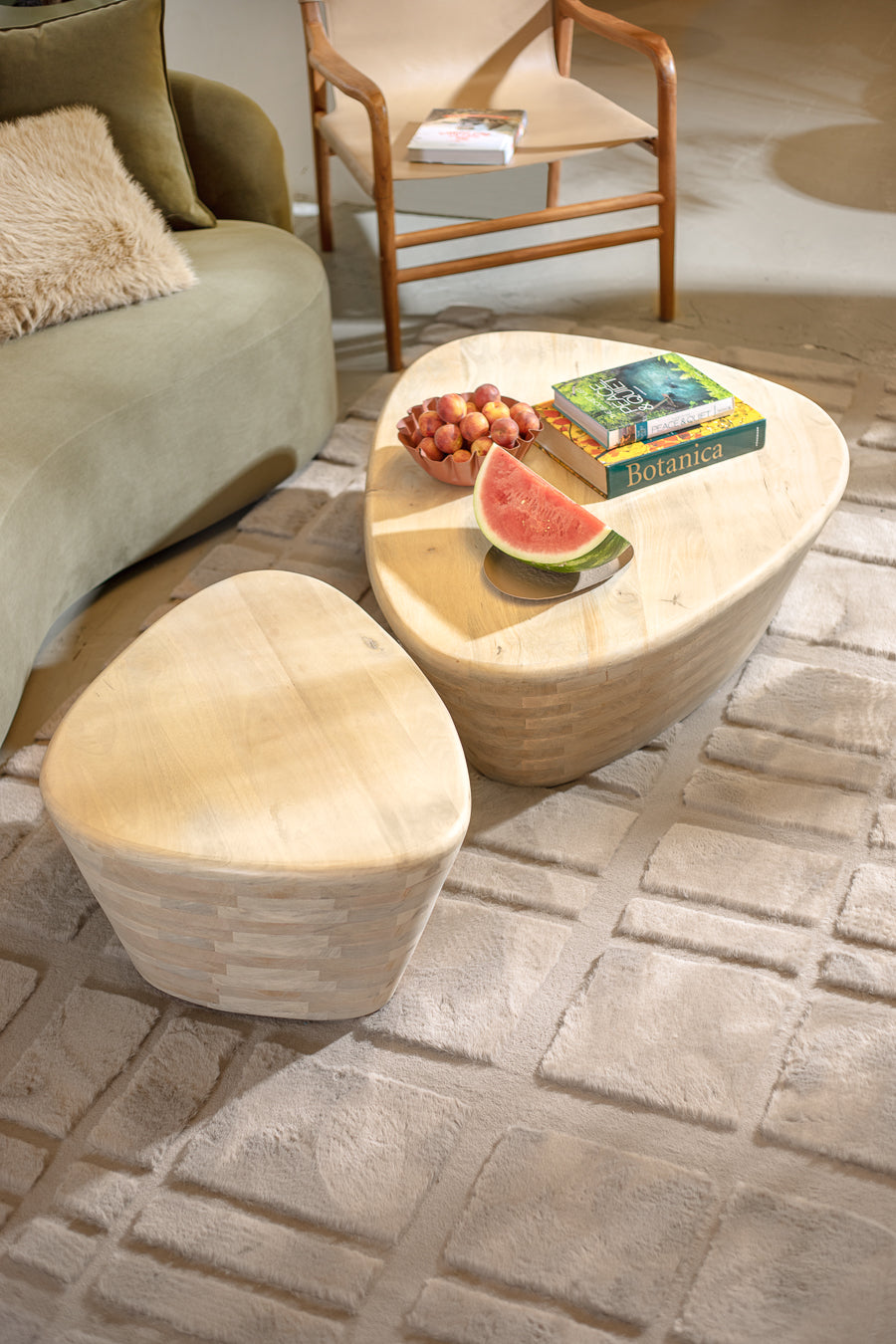 שולחן עץ מנגו אורגניק אמורפי בגוון עץ טבעי. רהיט מעוצב עץ גושני מקשה אחת בקו אותנטי עכשווי.