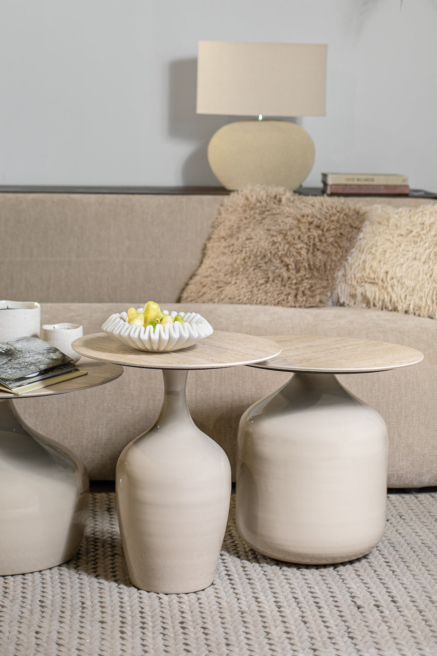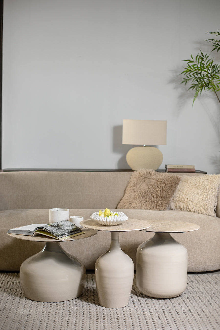 שולחן אייקון סקיני בגוון אפרפ. שולחן צד המעוצב פלטה עגולה דקה בגימור גלוסי.