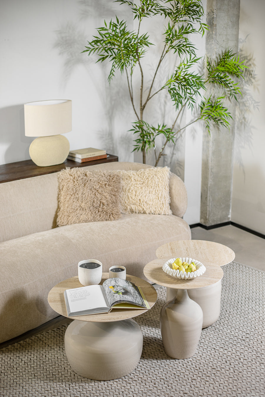 שולחן מנימליסטי המהווה אלמנט פיסולי במרחב.