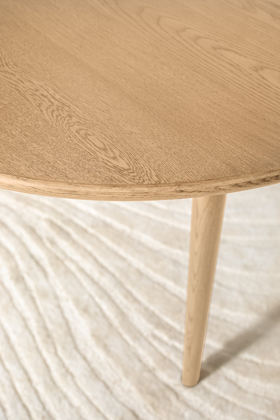 שולחן אוכל מרטינה עגול בגוון עץ בהיר. שולחן ייחודי בעיצוב אלגנטי מדוגם פורניר אלון. שולחן אירוח FINE לאוהבי אירוח ב-קו רך.
