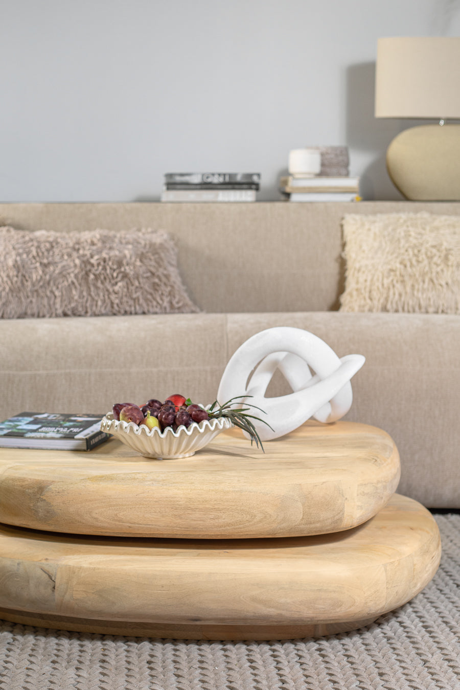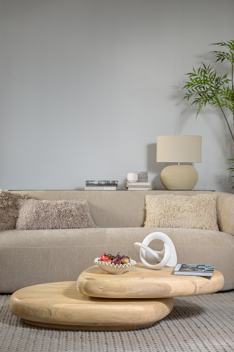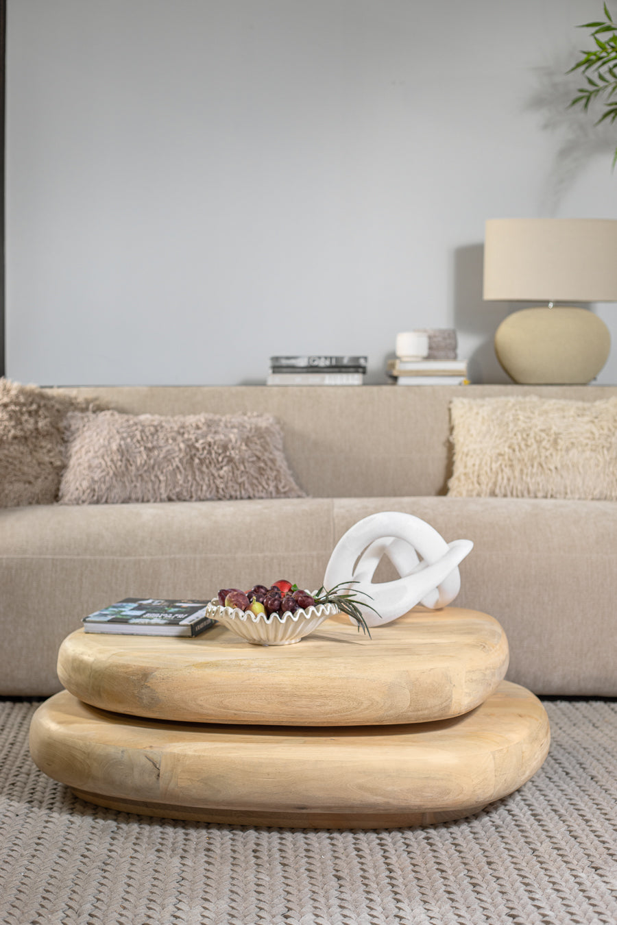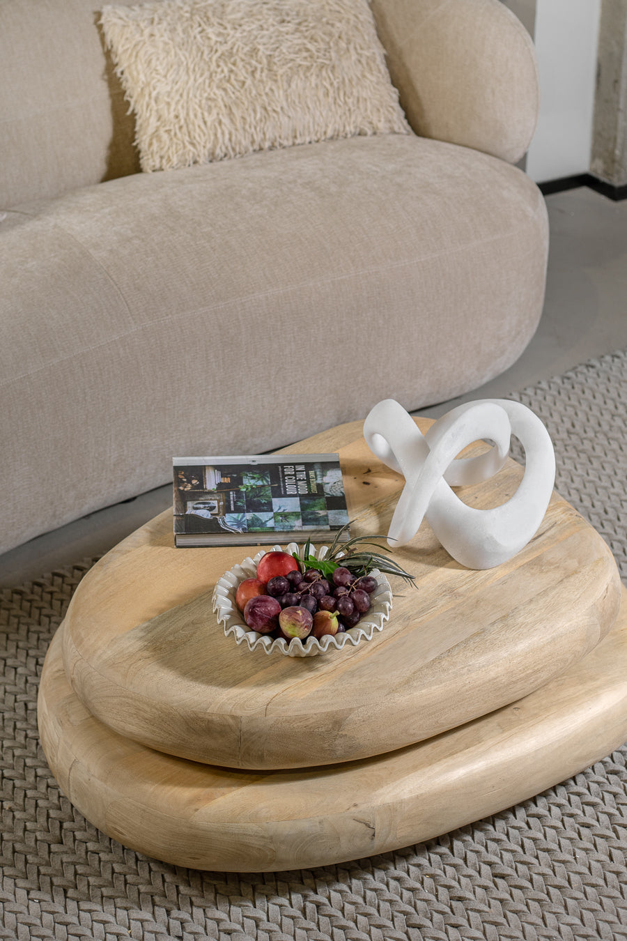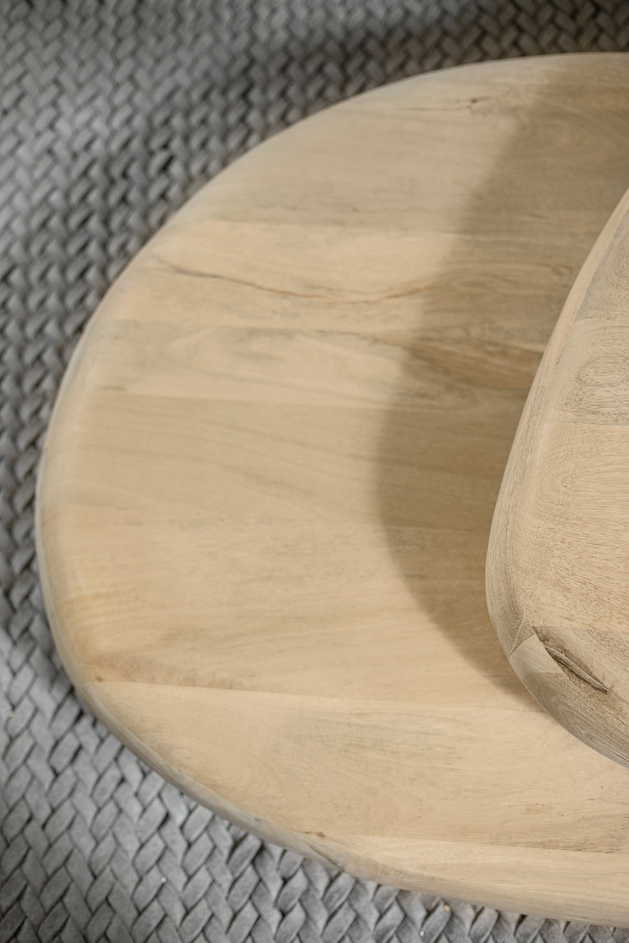 שולחן פרימיטיב דאבל בגוון עץ טבעי. שולחן סלון נמוך, מעוצב זוג פלטות עץ אמורפיות בגימור חלק.