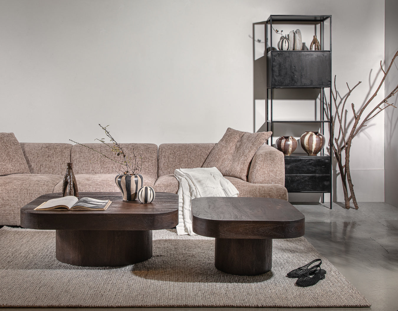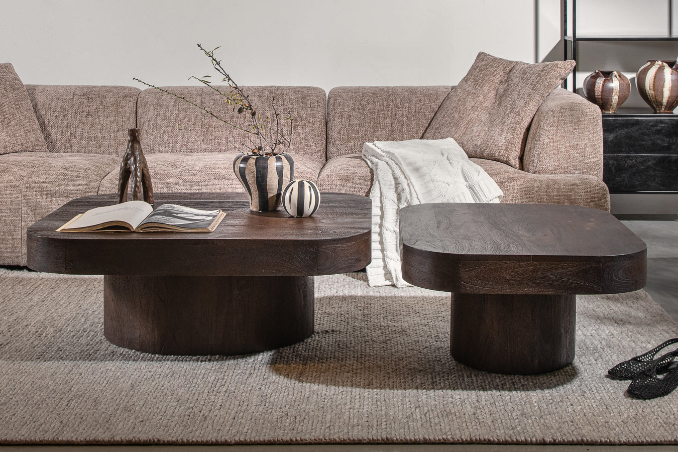 שולחן אירוח מעוצב עץ מנגו בגימור טבעי. שולחן צד זה הוא חלק מקבוצת שולחנות בגבהים שונים.