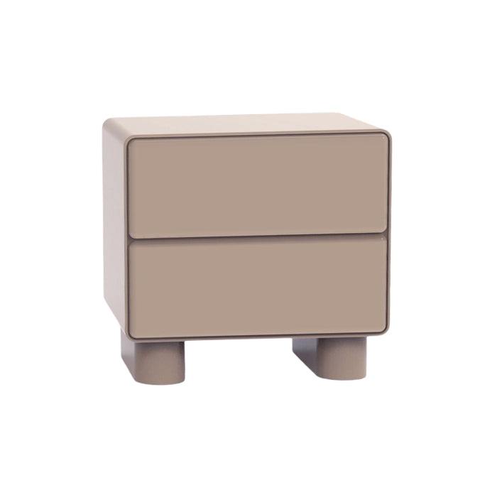שידה גלוסי ריבועית בגוון ניוד. שידת חמד שובה, המעוצבת זוג מגירות בגימור חלק.