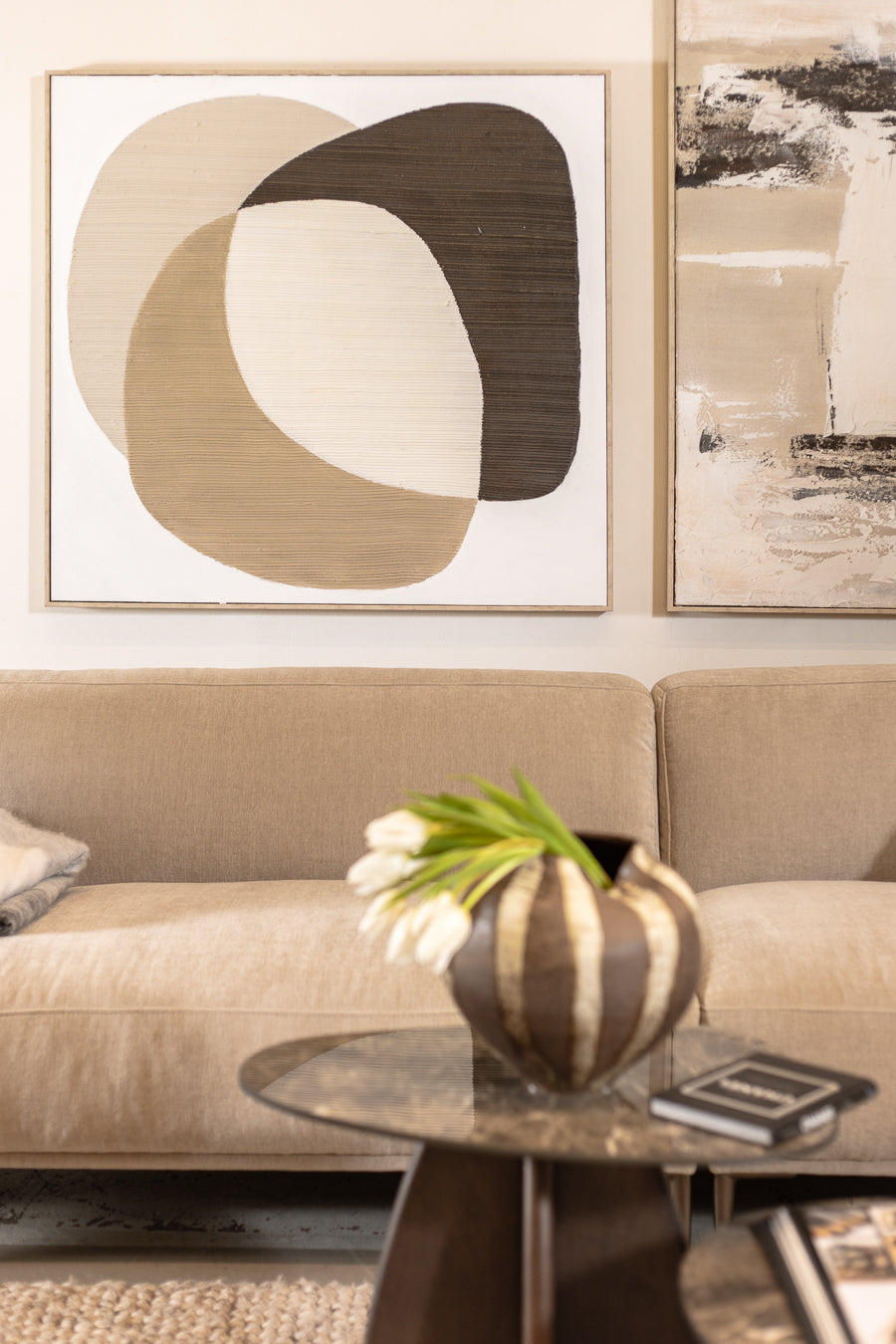 תמונה אטמוספריק אייר בגוון משתנה. תמונת קיר מופשטת בעיצוב משטחי צבע חופפים.