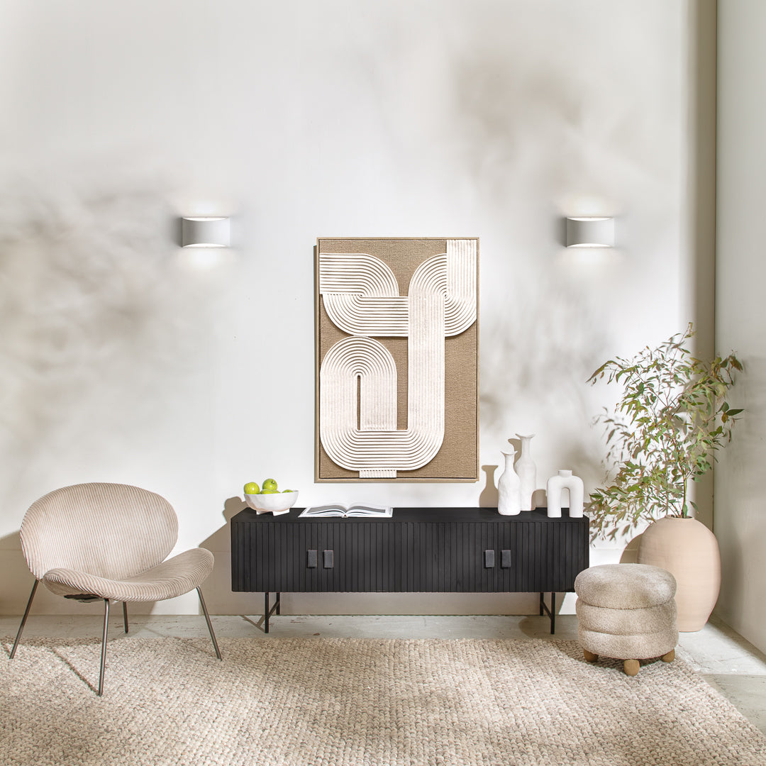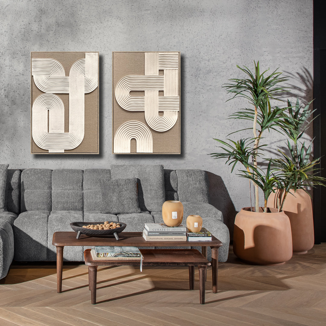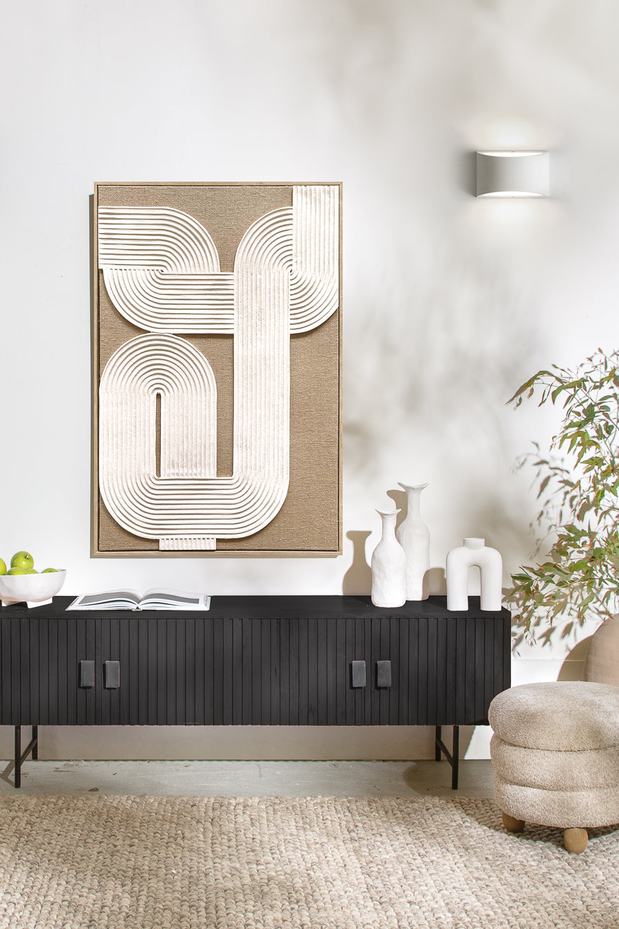 תמונת קנבס תבליט סטרייפס בגוון חום. תמונת תבליט מלבנית מעוצבת משיחות פסים בקווים מעוגלים.
