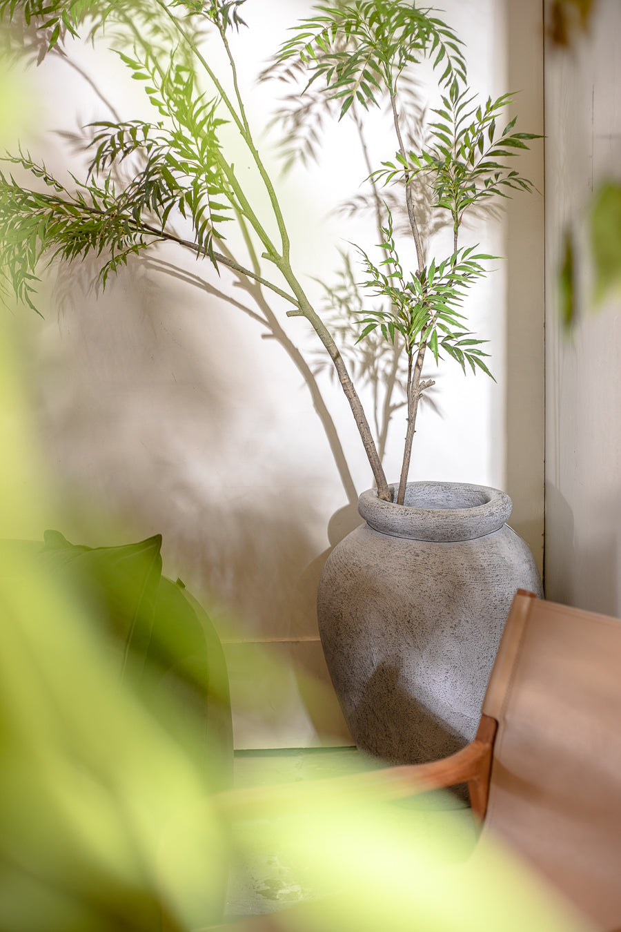 כד בטון פרימיטיב שפה עבה בגוון אפור. בית עציץ מאסיבי ומרשים שעיצובו מתכתב עם סגנון הכדים מהעת העתיקה. כד על זמני כובש בגוון תעשייתי מושלם ככלי קיבול לעציץ גדול בפתח הבית או בכניסה ללובי משרדים מרווח.