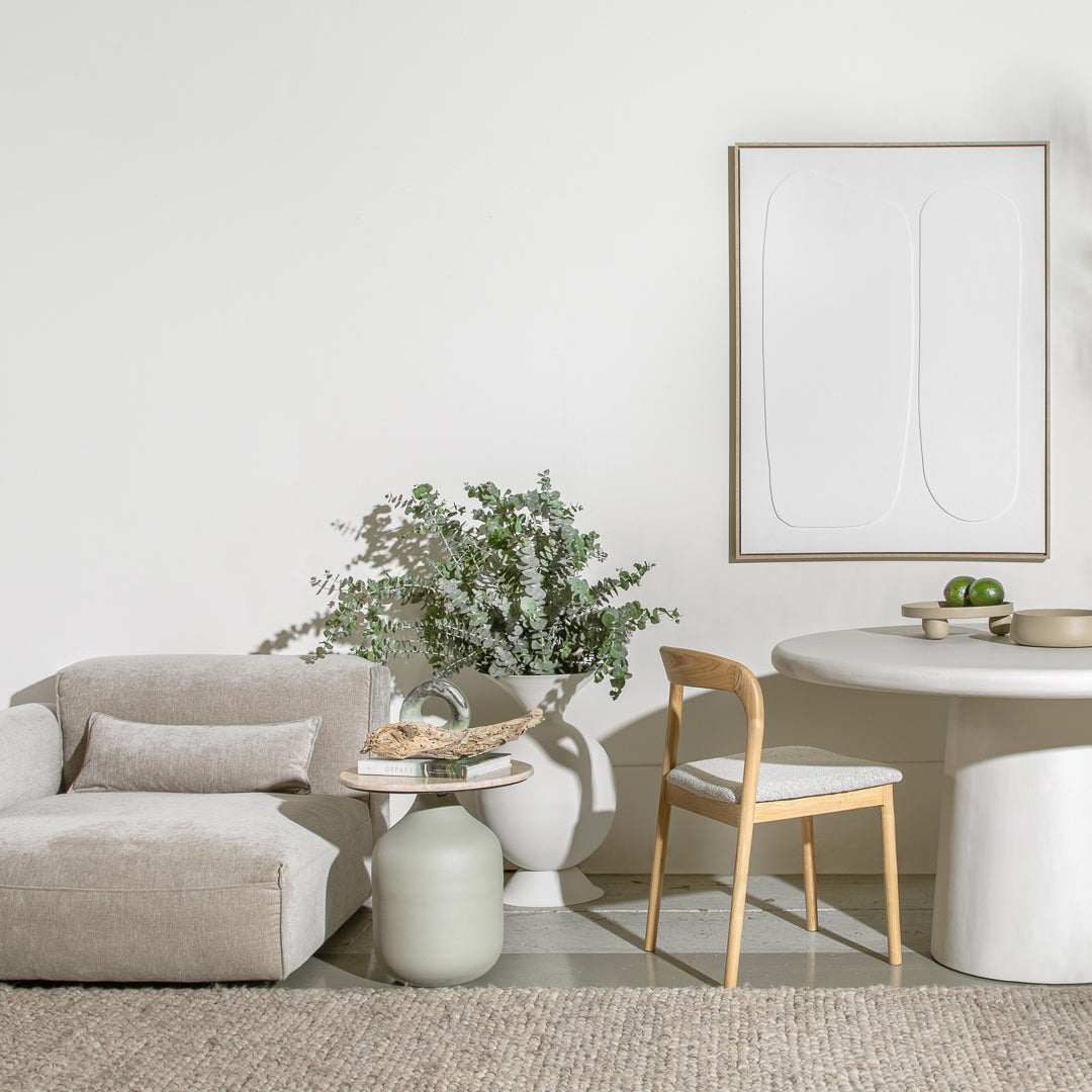 כיסא ישיבה מרגו בצבע לבן. כיסא מעוצב סגנון רטרו עכשווי, בנראות עור ופרופיל עץ חלק .