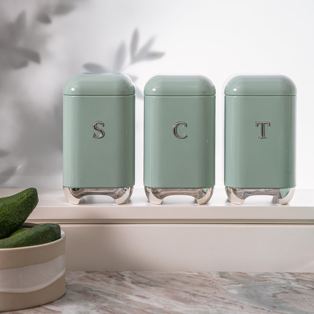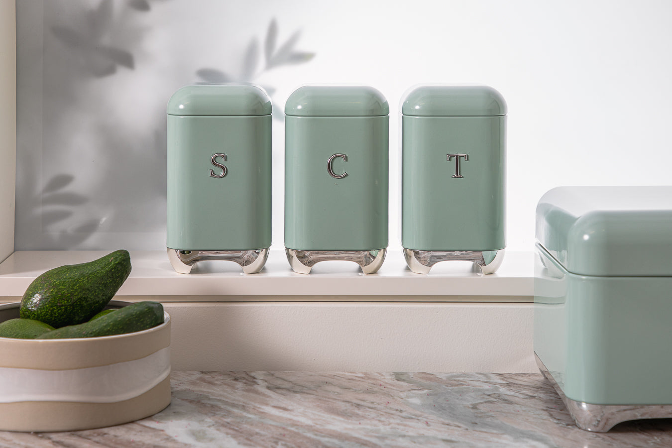 קופי שוגר טי בוקס בגוון ירוק מנטה. סט לאיחסון תה/ קפה/סוכר בעיצוב רטרו שובה.