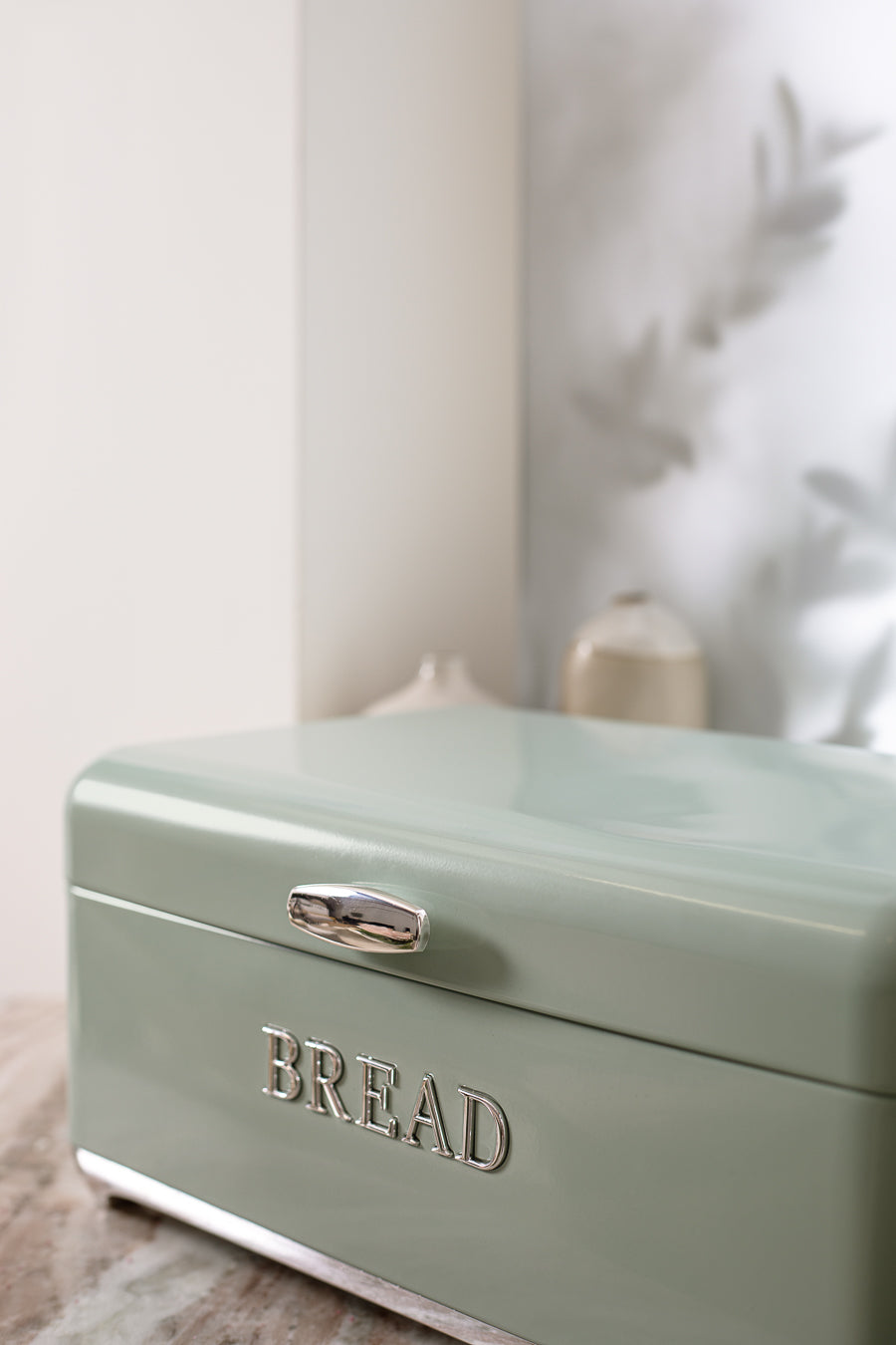 ברד בוקס רטרו בגוון ירוק מנטה. ארגז לחם מתכתי, לאיחסון ושמירה על טריות לחם/ מאפים.